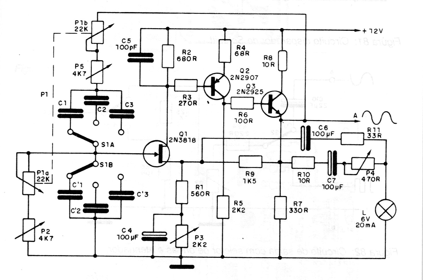This audio generator that produces both rectangular and sinusoidal signals was found in a publication from the 1980s. The components used are still common, and the BF245 can be used for FET. The circuit generates signals in the 20 Hz to 20 kHz range.