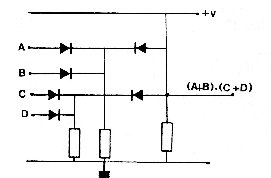 In this circuit, which uses only diodes, we have both simultaneous functions. The diodes are general-purpose types and the resistors have typical values of 2k2.