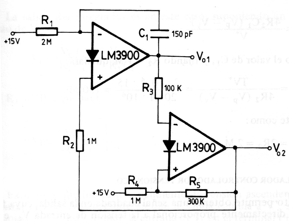 In the figure we have the way to implement a circuit that generates triangular and square signals using an LM3900 transconductance operational. The frequency depends on the capacitor and the resistors, which can be changed, depending on the application. The circuit is from a manual of integrated circuits from the 90s.