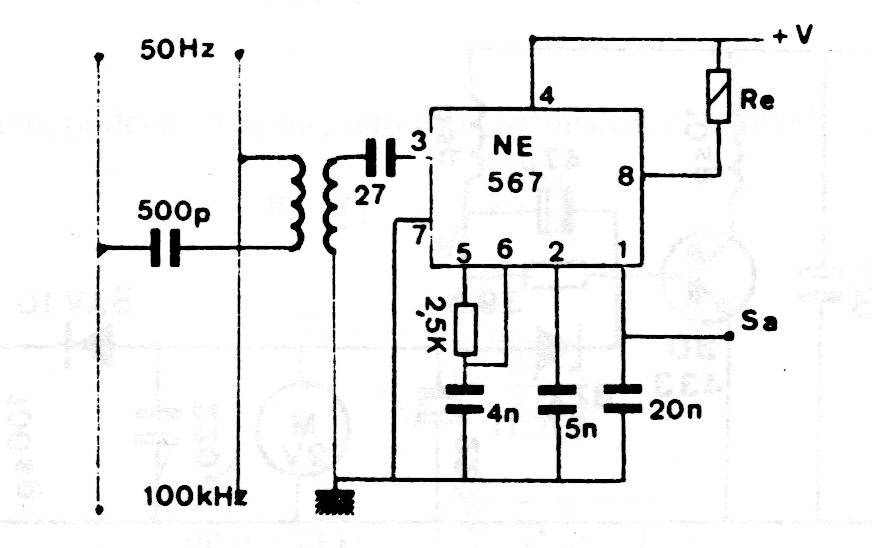 This circuit is based on the well-known PLL 567 and can operate at 100 kHz. The transformer can be wound on a ferrite rod with 100 turns in each winding of wire 28 to 32. Power is from 5 to 10 V.