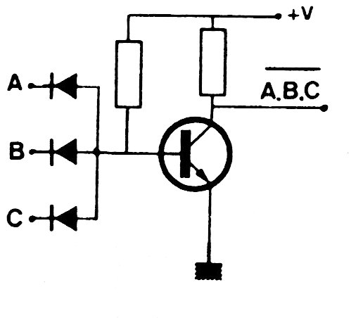 In the figure we have a simple configuration with a general-purpose transistor for a 3-input NO-AND or NAND gate. The diodes are general-purpose, and the resistors depend on the voltage of the logic used.