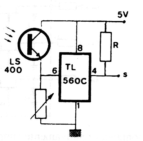 The integrated circuit used in this application is not currently common and the sensor can be any phototransistor. The circuit can be used as a shield for microcontrollers. The potentiometer serves as a sensitivity adjustment.