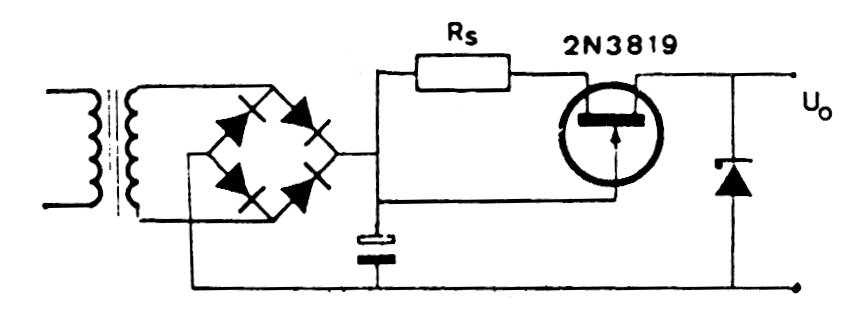 This voltage regulator for low current applications (a few milliamps) is from a European publication from the 1980s. The FET admits equivalent and the zener determines the output voltage. The resistor must be calculated so that the current does not exceed the maximum allowed by the transistor.