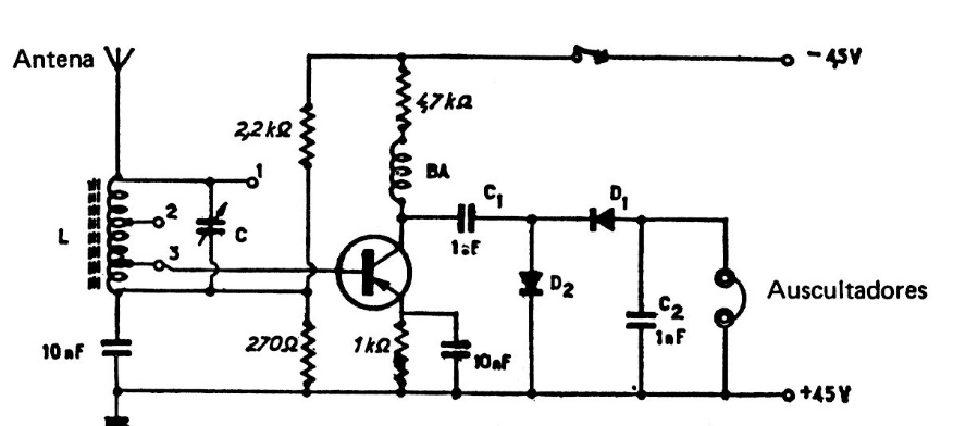 We found this circuit in a European publication from the 1970s. The transistor is made of germanium at the time and the high impedance magnetic phone. The antenna must be long and good ground is important. The coil is the same as the circuit (CB19592E). PNP germanium transistors of any type can be tested.