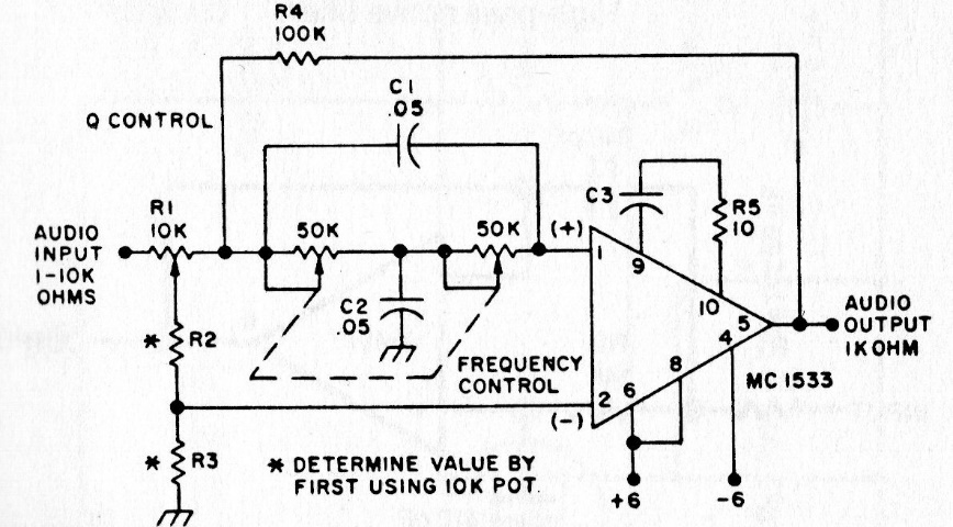This configuration was found in an old American documentation from the 80's. The circuit admits more modern operating equivalents. The power supply must be symmetrical and as an additional critical component we have the double potentiometer.