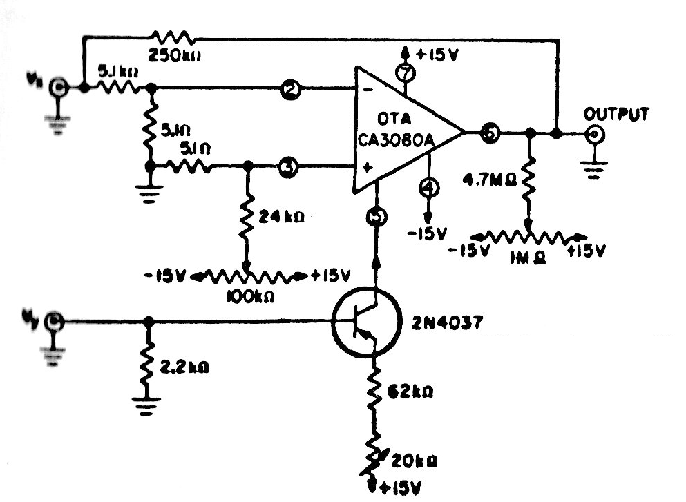 This circuit performs the multiplication of voltages without considering its signal. The circuit is based on documentation from the 1980s and should be implemented with modern operationals since the original is discontinued. The power supply is symmetrical.
