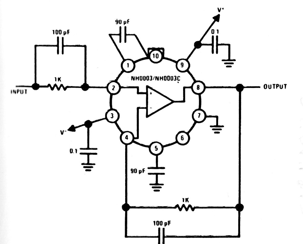 This voltage follower or amplifier with unit gain uses an unusual operational amplifier nowadays. The circuit can be implemented to use modern operationals. The power supply must be symmetrical.