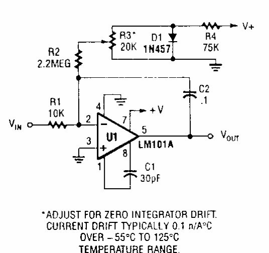 This circuit is designed to measure very weak currents, in the nanoampères range, using the 1 V...