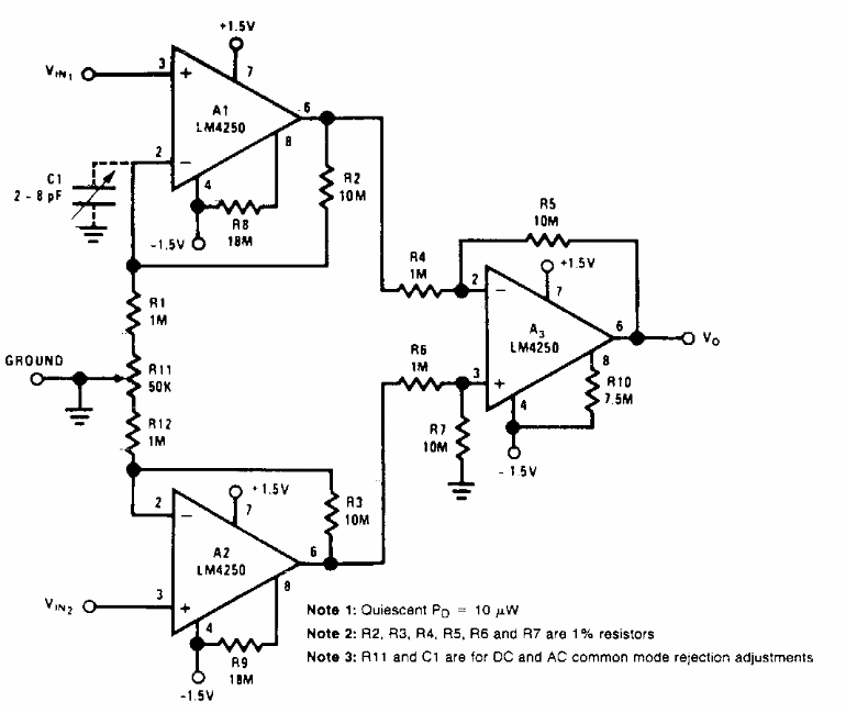 Found in National Semiconductor publication from the 1980s. This gain-100 circuit can be implemented with equivalent modern components, including lower voltage supply.