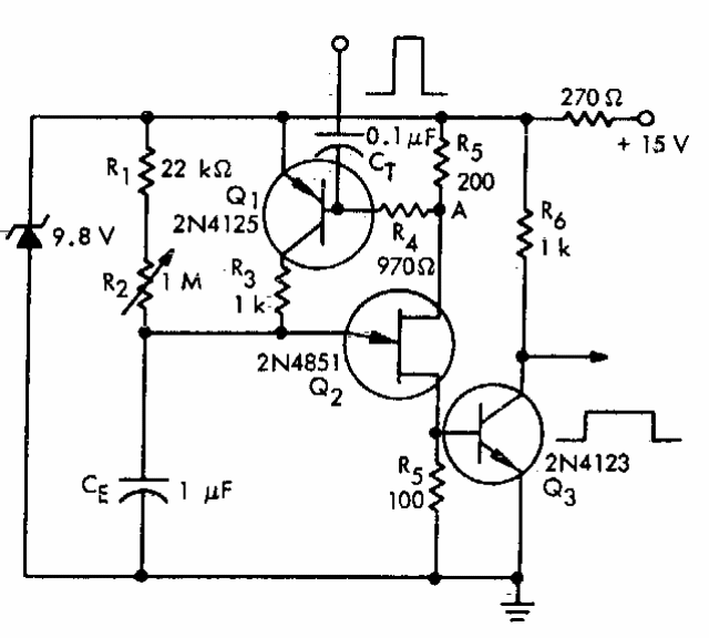 This circuit was found in old documentation. It can be made based on modern components. The time depends on the setting and the CE value.
