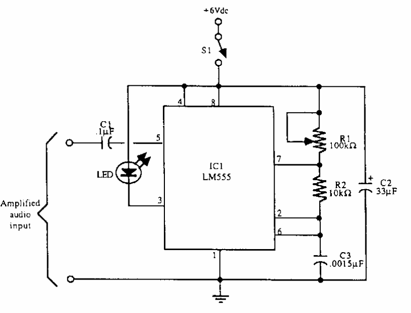 Found in old American documentation, this circuit is current as it uses the 555 to modulate an infrared LED. Pulses are set by R1.