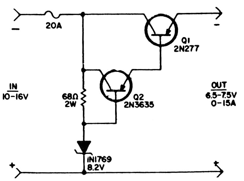 This reducer was found in documentation from the 1980s, using transistors of the time. The higher current transistor must have an excellent heat sink.