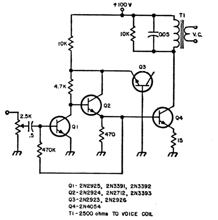 We found this circuit in an American documentation from 1975. The list of transistors that can be used is attached to the diagram. Modern types can be experienced.