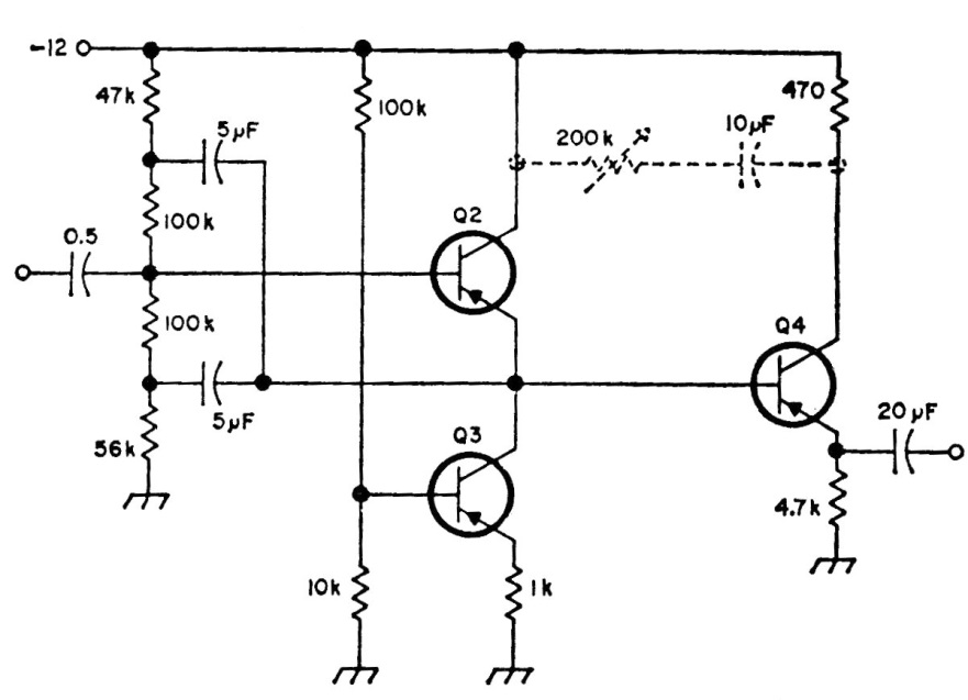 It is an improved version of the previous circuit with a voltage follower that reduces the load impedance. The circuit was found in American documentation from the 1980s.