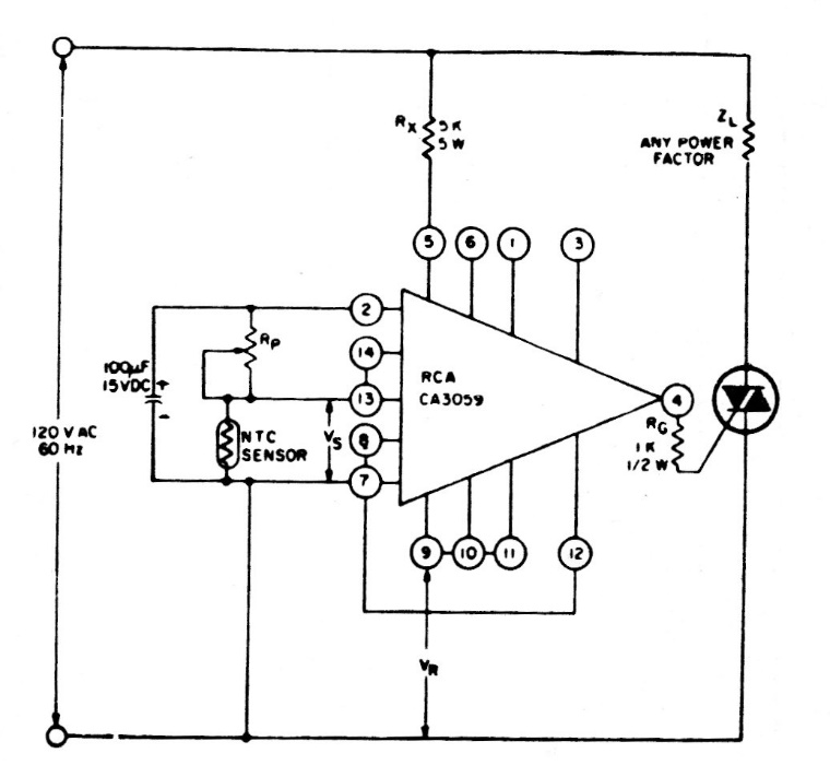 The load of this circuit depends on the triac and the integrated circuit used is uncommon today. The circuit is from 80s documentation. The triac must have a heat sink.