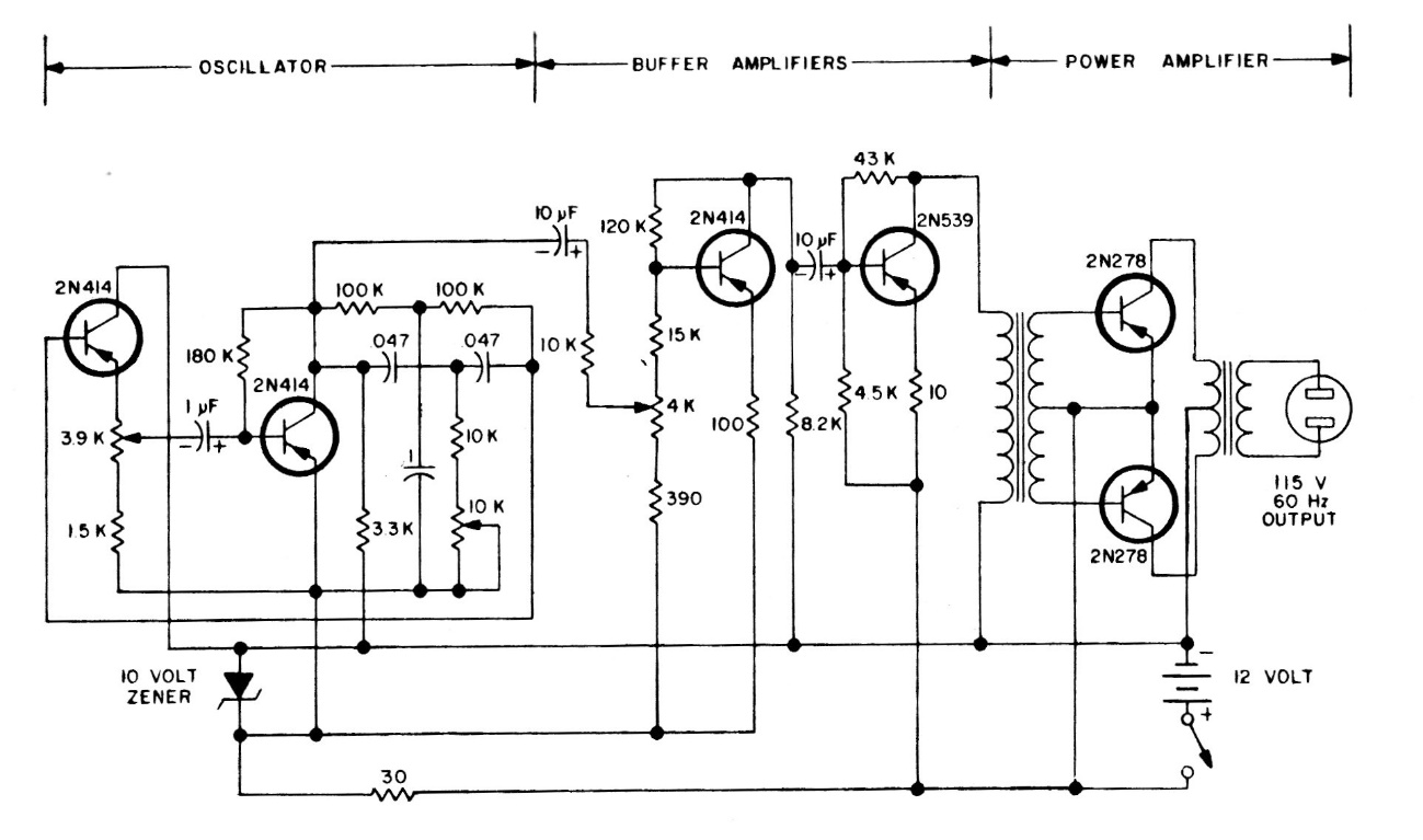 This sophisticated circuit is from a 1975 documentation. The components are from the time and the transformers are also critical components in the project. The circuit operates with a current of at least 12 A of input in 12 V battery, discounting its performance.