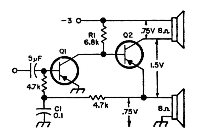 Another circuit showing this configuration since there are others in this same section with similar configurations. It provides a frequency response of up to 30 kHz and the output transistor can be the BD136.