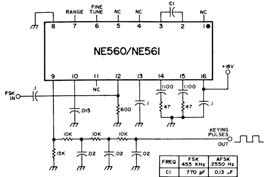 This circuit was found in an old documentation for radio amateurs. The circuit makes use of an uncommon integrated today. The circuit converts telegraph signals to be used on the computer.