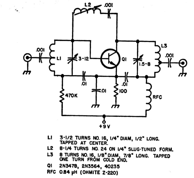 This low-noise circuit was found in American documentation from the 1980s. The circuit is critical, and the transistor must be of the type appropriate for the application. The coil data is given next to the circuit.