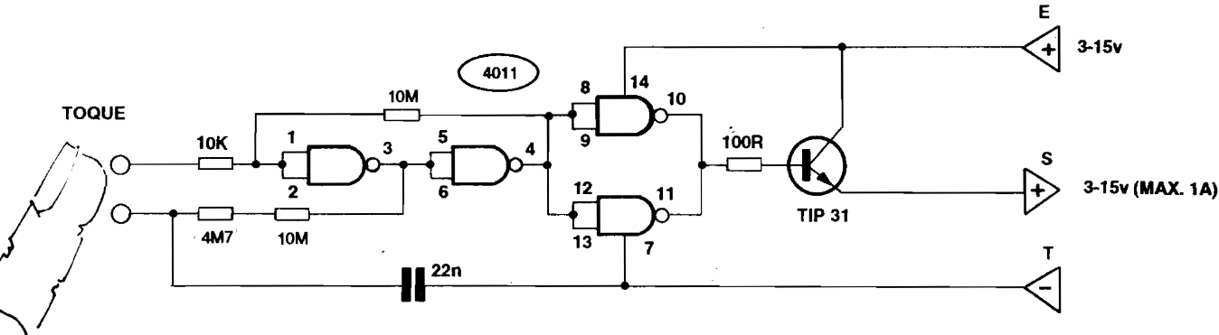 This circuit allows control of loads of up to 1 A with voltages from 3 to 15 V. The transistor must be equipped with a heat sink and the power supply must not be of the type without a transformer.