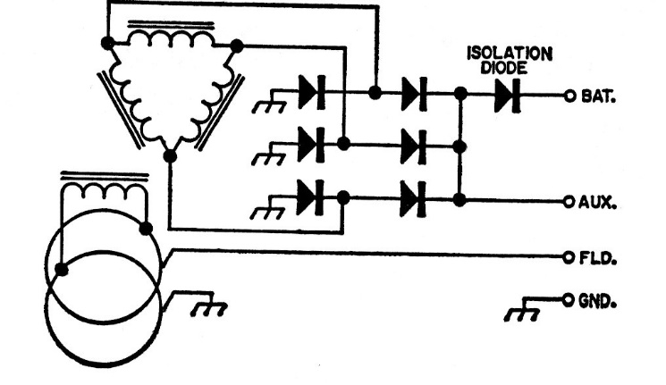 In the figure below we have the connections of an automotive alternator in a triangle. The diodes depend on the current.