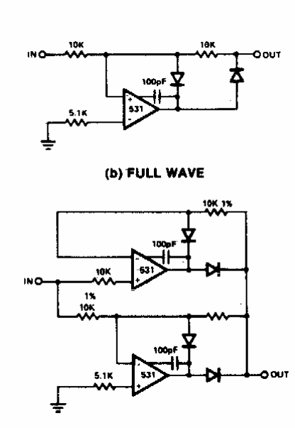 We have a half wave and a full wave rectifier for signals. The circuit can be elaborated based on other operational amplifiers.