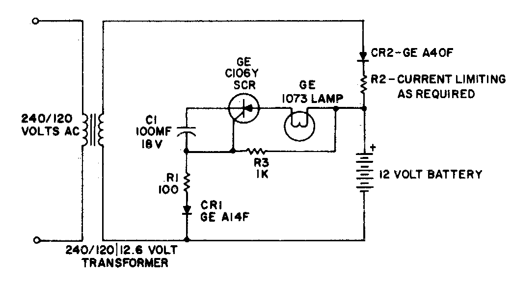 This circuit appears elsewhere in this section, obtained from other documentation. The circuit is for lead-acid batteries and the lamp can be replaced by high brightness LEDs.