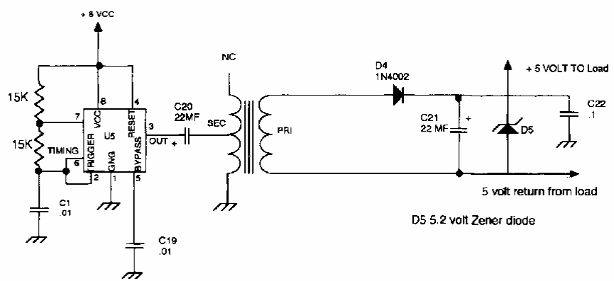 Found in a magazine 73 for radio amateurs of the 90s, this circuit converts a continuous voltage and another continuous voltage, but with insulation between the circuits.