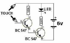 This sensitive continuity test uses two transistors and has a common LED as indicator. The input resistance is high and equivalent transistors can be used.