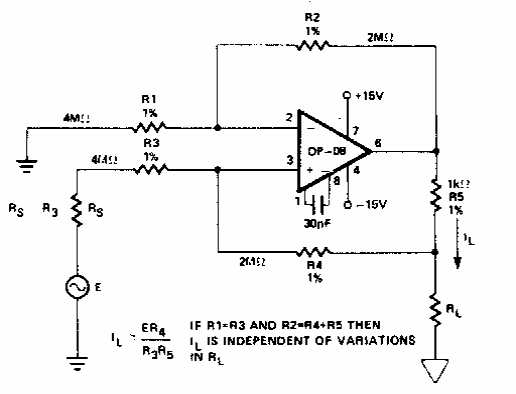 This circuit is based on an old operational amplifier, having been found in documentation from the 1980s. The circuit can be adapted to be used with modern operational amplifiers.