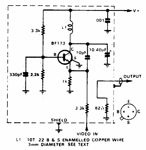 This circuit for analog video signals was found in old American documentation. The transistor supports a modern RF equivalent depending on the generated signal frequency.
