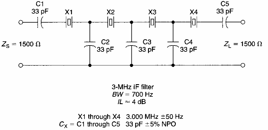 Found in American documentation from the 1980s, this circuit has a throughput of 700 Hz and a flat response of 400 to 500 Hz, with crystals of 3 MHz. Crystals of 2 to 15 MHz can be used.