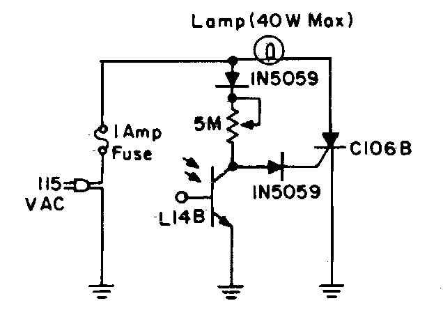 The phototransistor can be of any type and the adjustment potentiometer 4M7. This circuit was found in a documentation of the 90s, serving only for incandescent lamps.