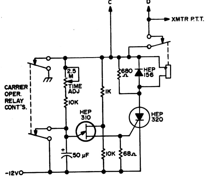 We found this timer circuit in an American documentation from the 1980s. The circuit uses the 6 V relay contacts to reset. The transistor supports equivalent as well as the SCR. The circuit is used in telecom repeater systems.