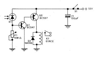 With the first project we present, a relay is activated in the presence of light. We can use it as a light alarm or in other applications that require activation by a good light source. To increase sensitivity and directivity, we can place a converging lens in front of the photodiode, so that the diode is in focus. This feature is very common in applications with this type of component.