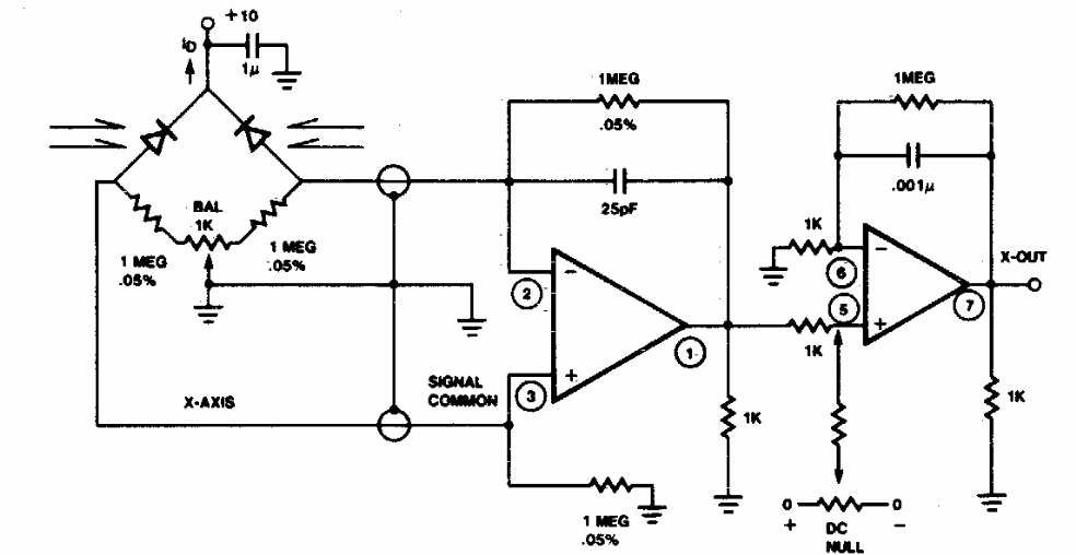 This circuit was found in documentation from the 90s. The operational amplifier is NE5514, which is uncommon today. The configuration can be adapted to use modern components.