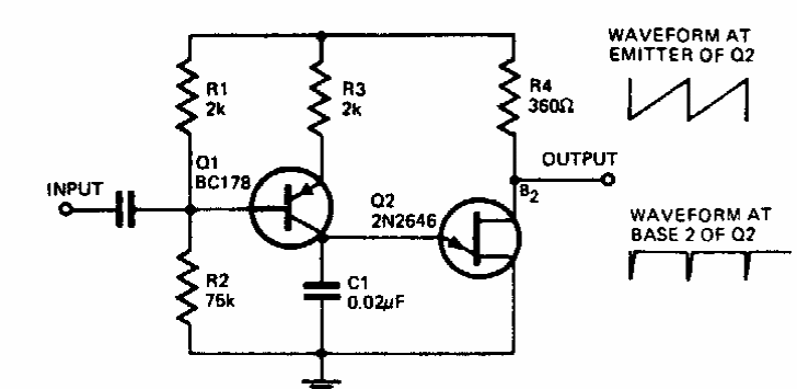 The transistor of this circuit can be the BC558. The circuit is from an old documentation generating something around 8 kHz as the central frequency. The positive power line, not shown, can have voltages from 9 to 15 V.
