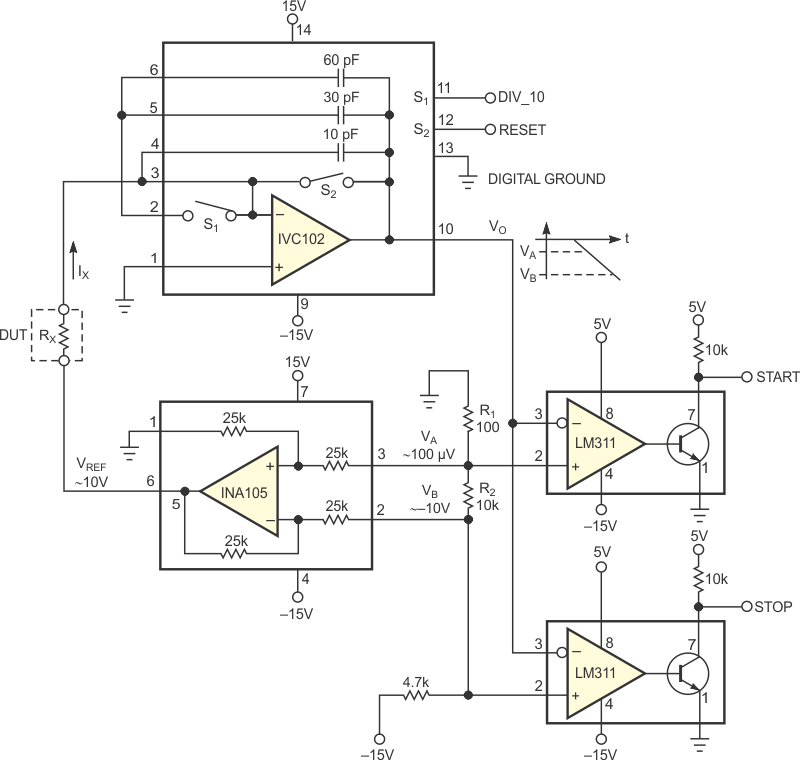 Based on the INA105 or LM311, this circuit was found in an internet documentation. Its purpose is to implement an ohmmeter capable of measuring resistances on the order of gigaohm with a common multimeter.