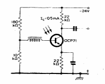 We found this circuit in a Mullard manual from 1960. The transistor is a phototransistor of the time. The gain is 3 dB.