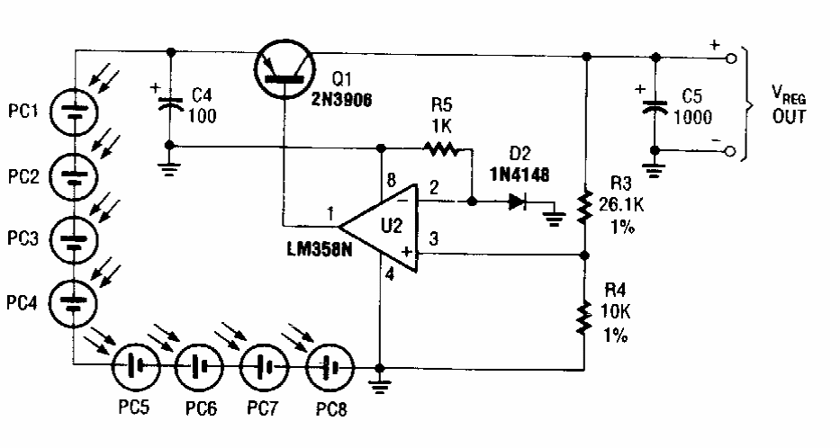 The circuit is from an Electronics Hobbyst Handbook from the 90s, being valid for panels of the time, with lower performance. The circuit supplies 2.4V with 125mA current.