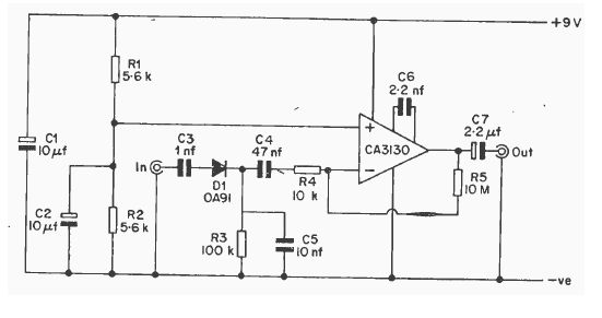 We found this circuit in an English publication from 1977. The circuit does not need a symmetrical power supply and employs a high impedance crystal or magnetic headphone.