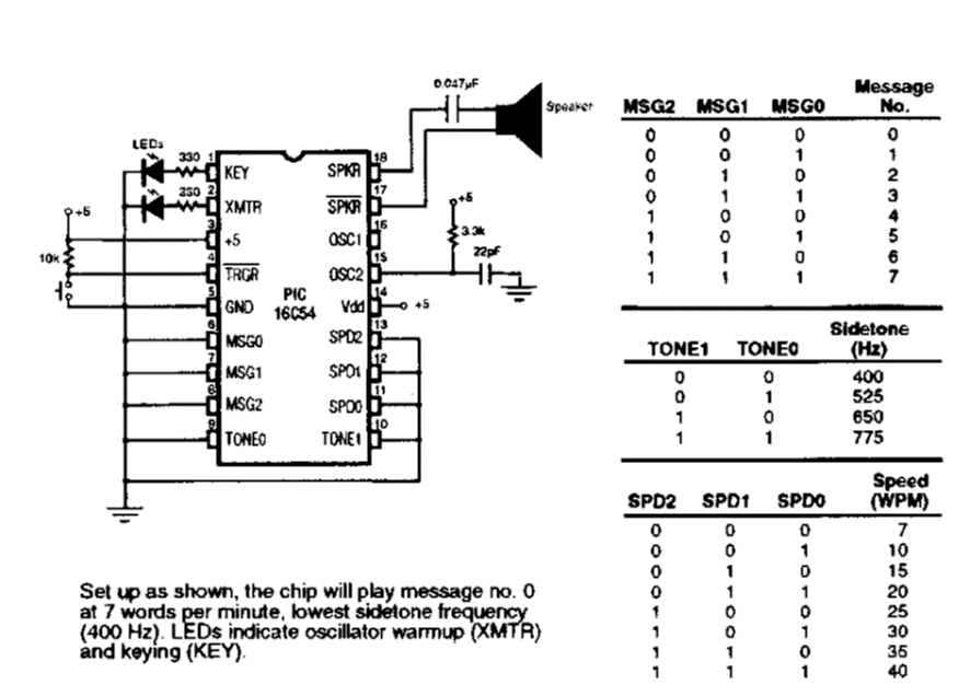 We found this circuit in a magazine 73 for radio amateurs from the 80's. The circuit makes use of an epochal component which is programmed according to the table beside the diagram.