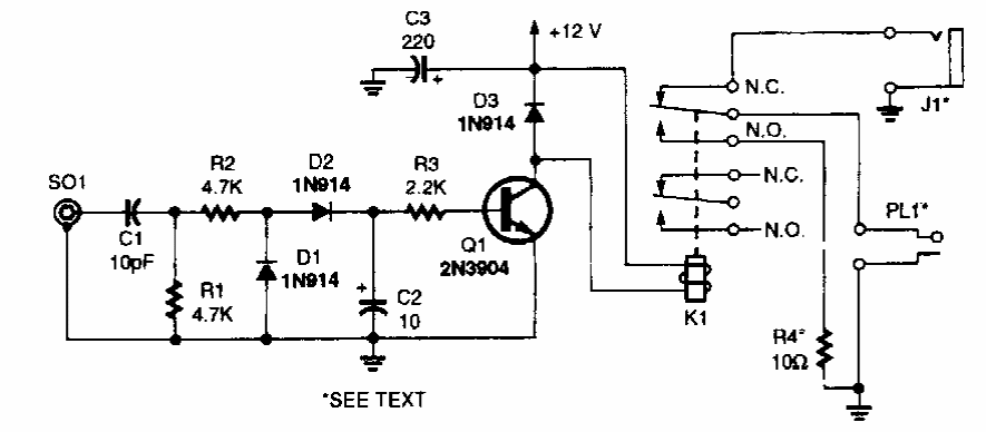 This circuit was found in a Popular Electronics from the 90s. Its purpose is to disable the output of an FM or VHF receiver between stations, preventing the reproduction of hiss.