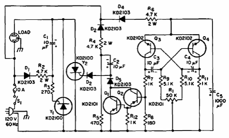 Found in a 1967 RCA manual, the purpose of this circuit is to keep the coffee warm in an electric coffeemaker. The components are from the period.