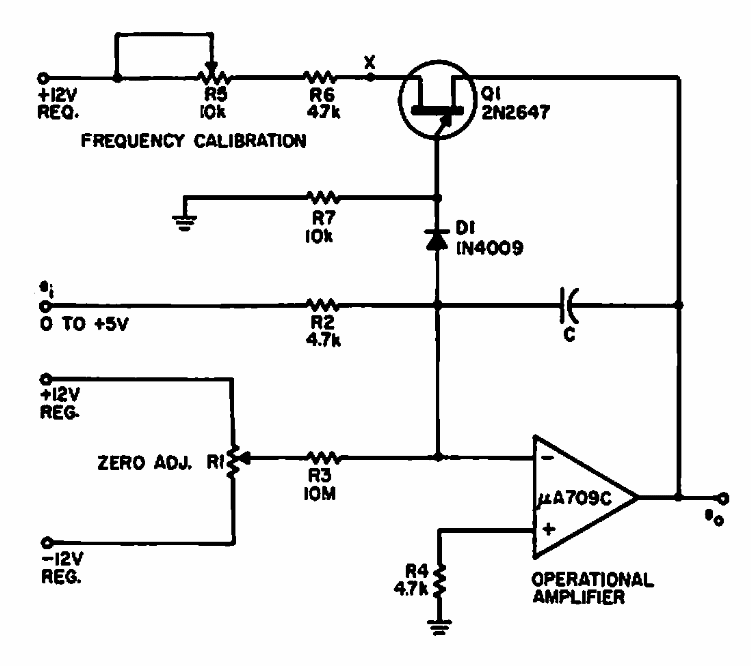 This circuit was found in a 1967 Electronic Design. The circuit makes use of components from the time. Modern equivalents can be used.