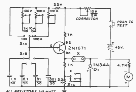 This circuit was found in documentation from 1977. It consists of a bridge of capacitances using a 50 uA full scale indicator.