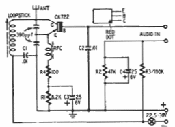 This transmitter for short range in the medium wave range was found in a Raytheon publication from the 1960s. The transistor is made of germanium and the coil is for the medium wave range.