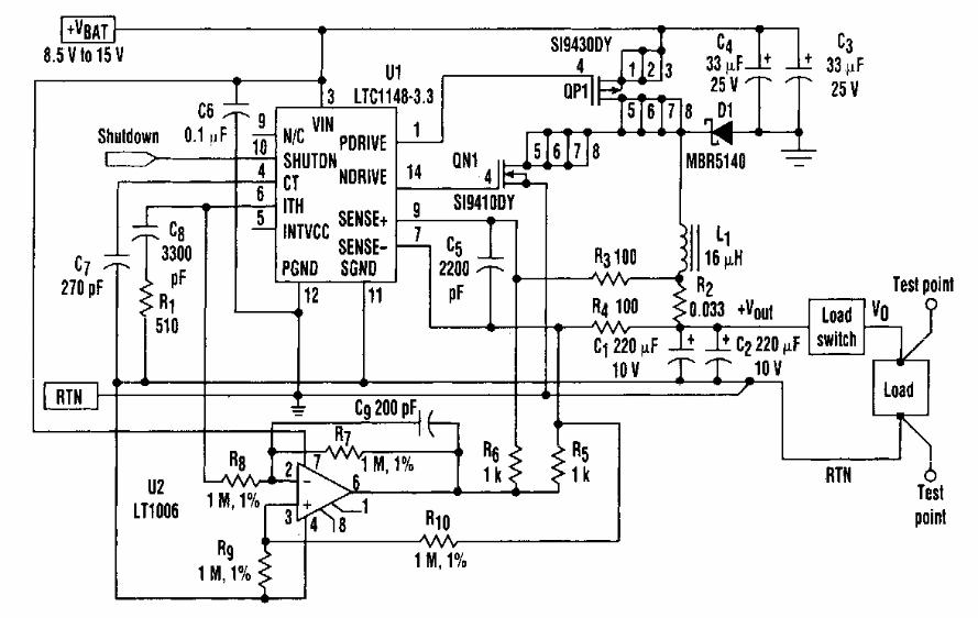 This switching power supply was found in an Electronic Design from the 90s. The components are from the period.