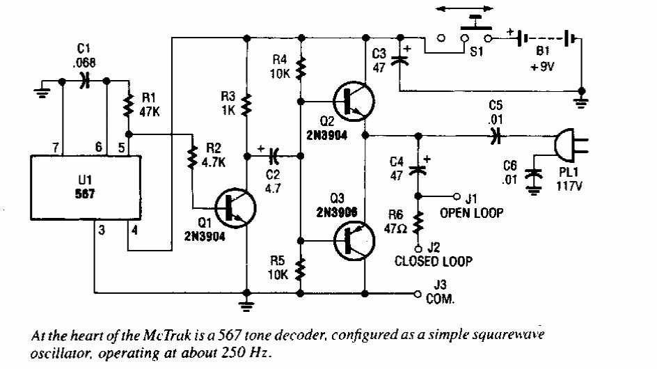 Found in an Electronic Hobbyist Handbook from the 1990s, this circuit is intended to apply a signal to a cable to enable its location.