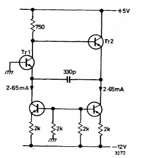 This different astable configuration was found in one in a 1974 Ferranti transistor manual. Transistors are general-purpose types at the time.